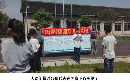 近日,该校除了按教育局开展防溺水“六个一”动做外(挂一张图、唱一首歌、发一封信、看一次专题片、上一次课、写一篇不雅后感),特添加一个“狠”动做:要求每个学生对《仁湾镇学校学生防溺水“六不”许诺书》到班从任处背字。勾当过程是:正在大课间操上,全校举行背字典礼,各班代表正在国旗下背字;正在读报课上,学校给每个班级教室黑板左边贴上一张永世性的《学生防溺水“六不”许诺书》,学生先集体背书,再人人到班从任处过关背书,最初个个正在《许诺书》上用记号笔签上本人的名字。这一勾当给学生思惟上很大的震憾,极大的提高了学生防溺水平安认识。(蒋剑中)。